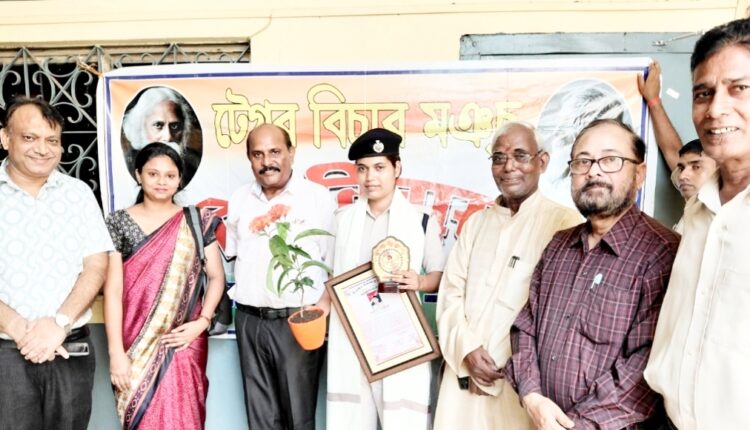 साहिबगंज। टैगोर विचार मंच के द्वारा सोमवार को यहां रेलवे न्यायिक दंडाधिकारी के कार्यालय में सम्मान समारोह का आयोजन किया गया। समारोह में मुख्य अतिथि रेलवे न्यायिक दंडाधिकारी राहुल कुमार के हाथों एक महिला यात्री की जान बचाने वाली रेलवे पुलिस स्वीटी सिंह को शॉल ओढ़ाकर एवं मोमेंटो व प्रशस्ति पत्र देकर सम्मानित किया गया। जबकि मंच के अध्यक्ष डॉ.रणजीत कुमार सिंह ने आरपीएफ स्वीटी सिंह को पौधा देकर प्रकृति व पर्यावरण संरक्षण का संदेश दिया। मुख्य अतिथि श्री कुमार ने स्वीटी सिंह की बहादुरी और ड्यूटी में सतर्कता की खूब तारीफ की। मंच के अध्यक्ष डॉ.सिंह ने कहा कि स्वीटी सिंह ने ड्यूटी के प्रति अपनी जवाबदेही और मानवता की मिसाल पेश की है। साथ ही दूसरे के लिए प्रेरणा प्रस्तुत किया है। मंच के सचिव हिमांशु शेखर गुहा ने कहा कि किसी का जीवन बचाना मानवता का उत्कृष्ट सेवा प्रदर्शन है। गौरतलब है कि साहिबगंज रेलवे स्टेशन के प्लेटफार्म नंबर एक पर ऑपरेशन जीवन रक्षा के तहत आरपीएफ स्वीटी सिंह ने बहादुरी का प्रदर्शन करते हुए भागलपुर-अजीमगंज पैसेंजर ट्रेन से उतरने के समय अपना संतुलन खो बैठी एक महिला यात्री की जान बचाई थी। स्वीटी सिंह की इस बहादुरी व ड्यूटी के प्रति सतर्कता पर रेलवे मालदा डिवीजन ने उनके साहसिक कार्य की सराहना की थी। आज के इस सम्मान समारोह में सेवानिवृत सीआईटी विजय कुमार, नवीन भगत, शिखा पहाड़िन, उमा शंकर प्रसाद, समीर साहा, श्याम उरांव आदि उपस्थित थे।