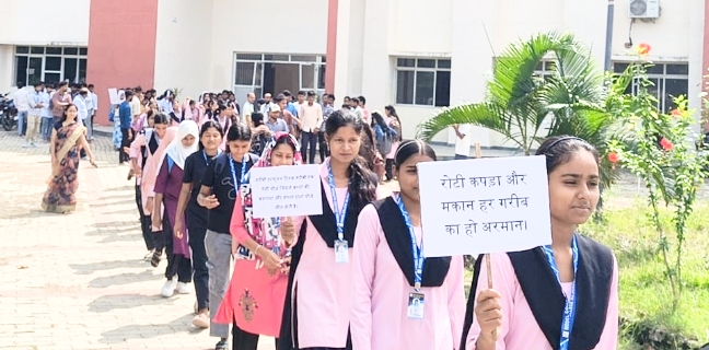 रैली में शामिल एनएसएस स्वयंसेवक एवं कॉलेज के अन्य छात्र-छात्राएं शिक्षा है विकास की कुंजी, स्वरोजगार अपनाओ गरीबी हटाओ, स्वदेशी अपनाओ देश को बढ़ाओ आदि का नारा लगाते हुए खैरबन्नी गांव पहुंचे। यहां उन्होंने स्थानीय ग्रामीणों से संवाद किया और उन्हें गरीबी उन्मूलन के विभिन्न उपायों जैसे शिक्षा का प्रसार, स्वरोजगार के अवसरों की खोज, स्थानीय संसाधनों का उपयोग, सरकारी सहायता योजनाओं का लाभ व स्वदेशी उत्पादों के प्रोत्साहन के महत्व के बारे में जानकारी दी।