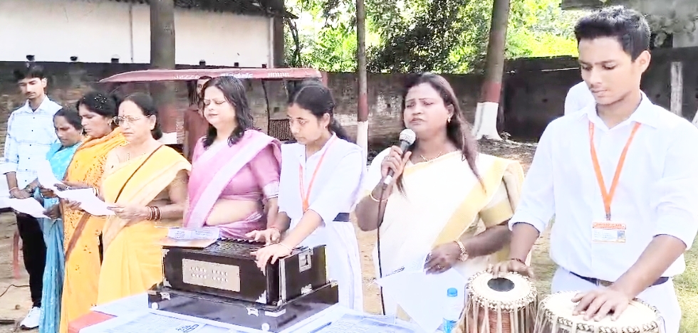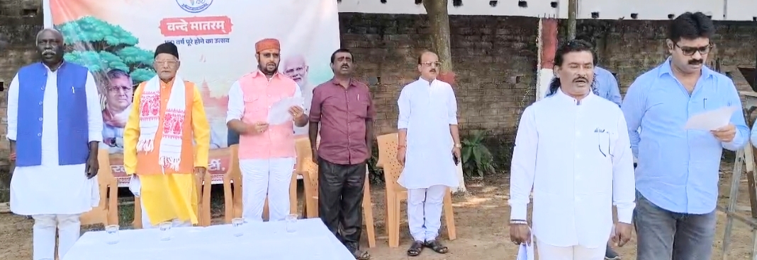 भाजपा के सामूहिक गायन कार्यक्रम से उपराजधानी दुमका में गूंजा राष्ट्रीय गीत वंदे मातरम्, लहराया तिरंगा
